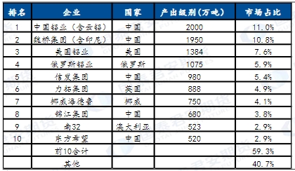 国泰君安报告显示,美国铝业是全球在中国以外区域最大的氧化铝生产商,仅次于中国铝业和魏桥集团。