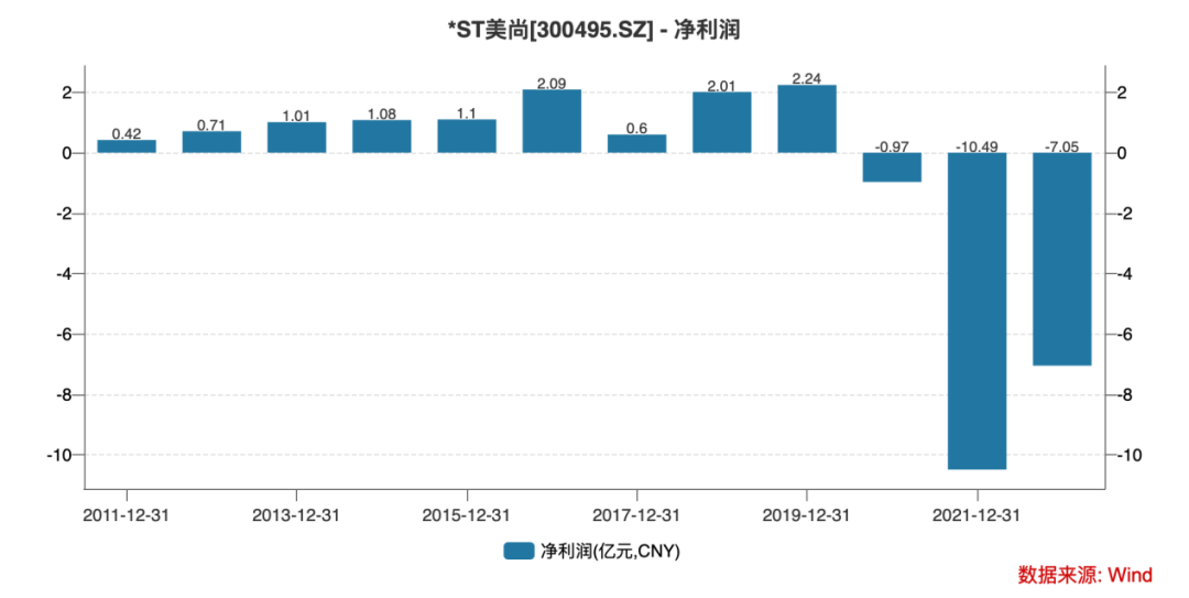 一系列违法违规事项被揭露后,美尚生态业绩暴跌。营收下滑的同时,净利润以及连续四年亏损。2020-2022年分别净亏损0.97亿元、10.49亿元、7.05亿元,亏损总数超过上市以来净利润之和。