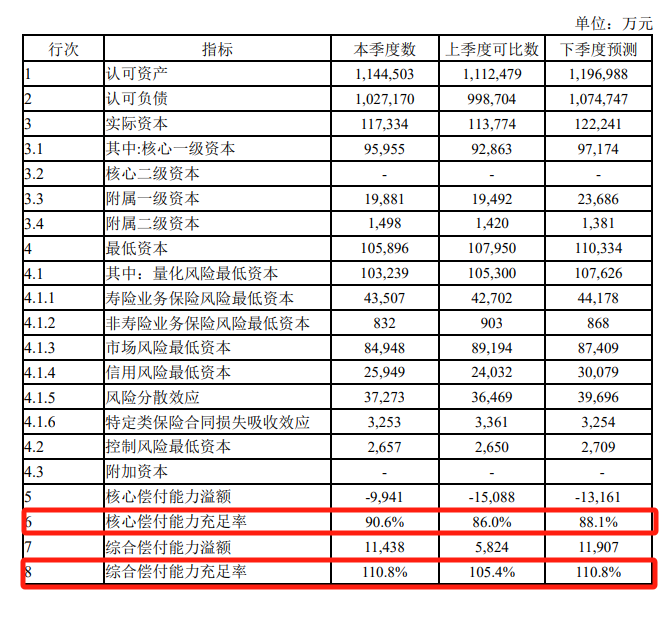 长生人寿2023年第四季度偿付能力报告显示,该险企2023年第四季度核心偿付能力充足率为90.6%,较上季度末结果上升4.6个百分点;综合偿付能力充足率110.8%,较上季度上升5.4个百分点。