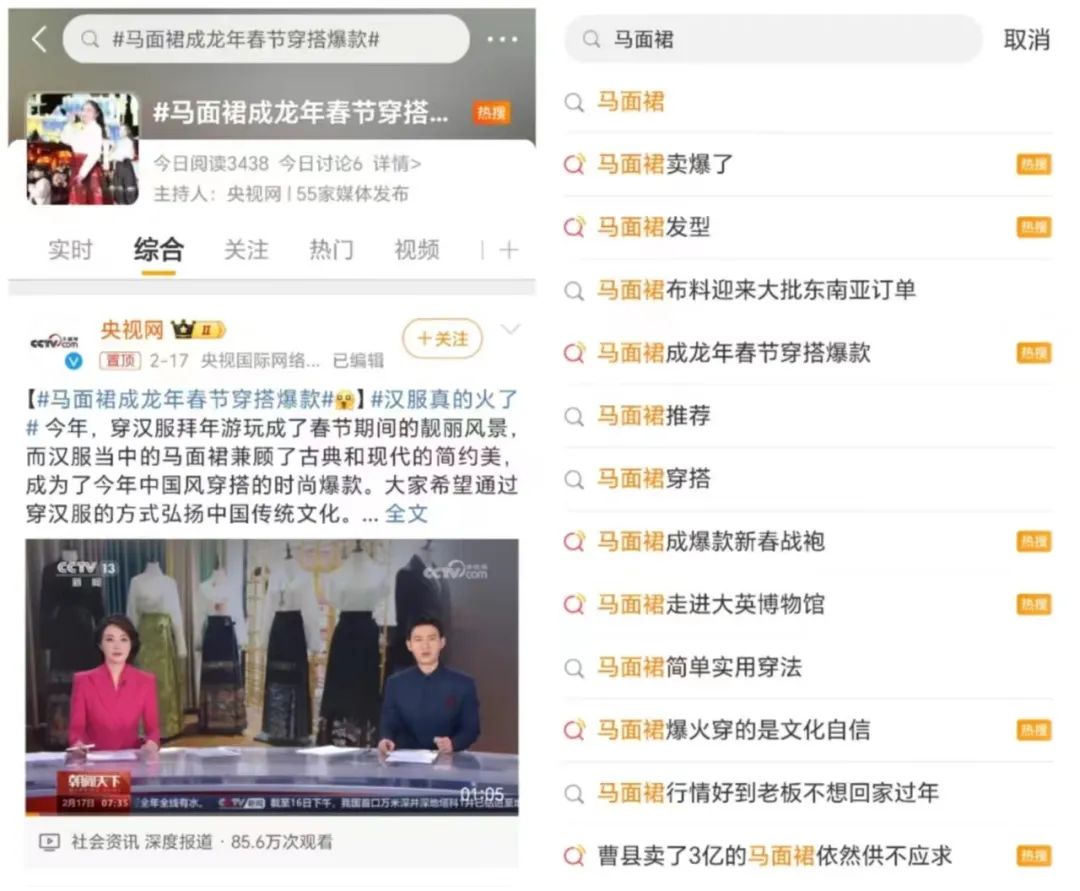 传统古典+现代美感,掀起一阵马面裙穿搭的热潮。方便、灵活,日常出街无压力,美感与便捷共存的属性让马面裙成为春节战袍的不二首选。被戏称为宇宙中心的曹县,不仅承包了日本90%的殡葬生意,更是国内汉服年销量超70亿元的汉服生产基地之一,今年曹县以马面裙为主的龙年拜年服销售额超3亿元。