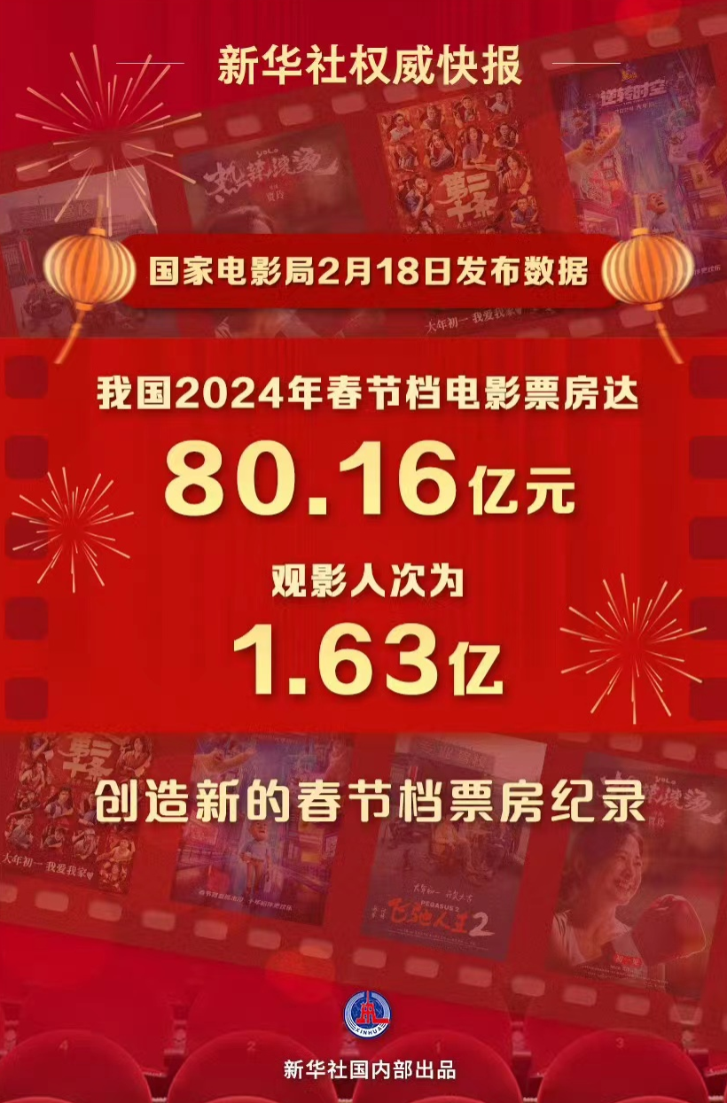 贾玲减重一百斤带来《热辣滚烫》的逆袭篇章,还未上映便已成为热搜上的“常客”;聚焦正当防卫,《第二十条》在笑与泪中探讨情与理的争端下什么才是真正的正义;童年的伙伴熊出没带来新年新故事,聚焦时空穿越再次走进那个梦开始的夏天……更有《飞驰人生2》欢乐上映,多部实力影片,共创80.16亿元,观影人次1.63亿的辉煌战绩,成功刷新春节档票房纪录。