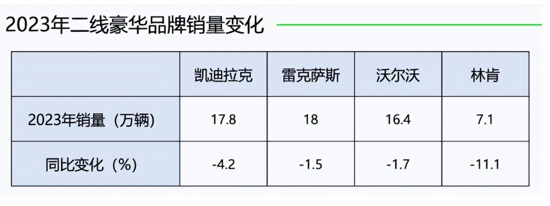 如今,比BBA品牌稍弱的凯迪拉克、沃尔沃等二线豪华品牌销量已经出现了下滑。一旦BBA价格长期下滑,品牌力被长期稀释,其步二线豪华品牌的后尘也并非全无可能。