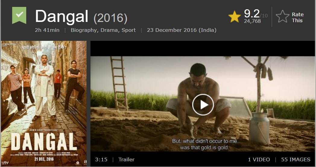 最近有一部印度电影冲上了口碑榜,《摔跤吧!爸爸》(中译名已被多方吐槽N遍),IMDb两万多观众评分,成绩飙到9.2。