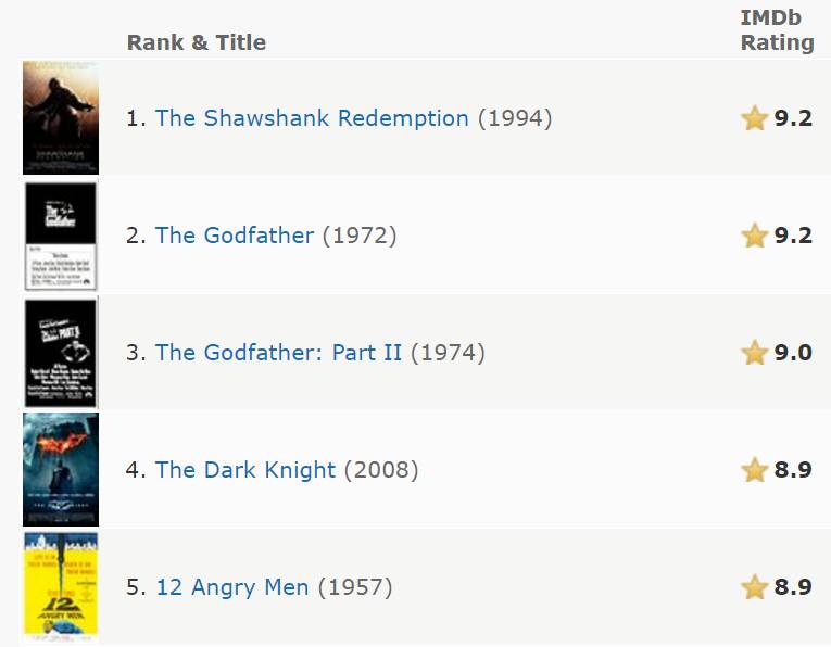 TOP250榜单中,仅有《肖申克的救赎》和《教父》达到了这一成绩。