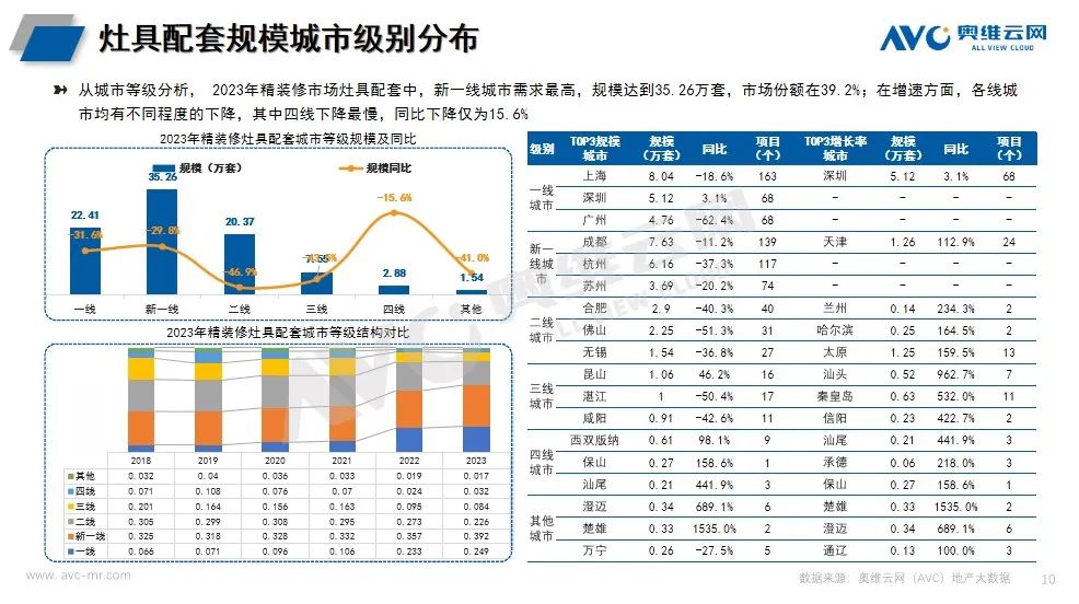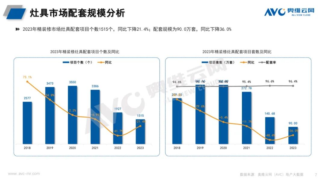 奥维云网(AVC)《2023年中国房地产商品住宅精装修市场厨电年报》总结精装修市场厨电产品呈现以下特征: