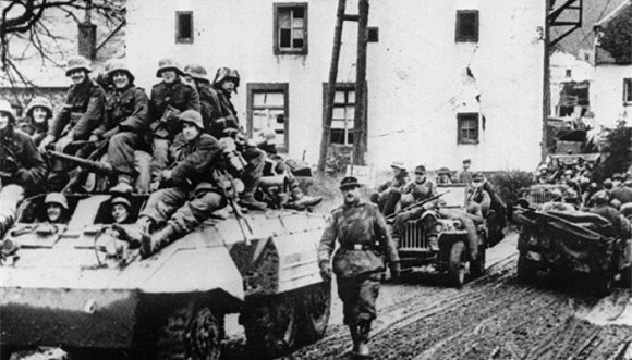 1944年12月16日清晨,超过20万德国军队和几乎1000辆坦克穿过绵延85英里的前线,从比利时南部向卢森堡进发,开进了阿登森林。