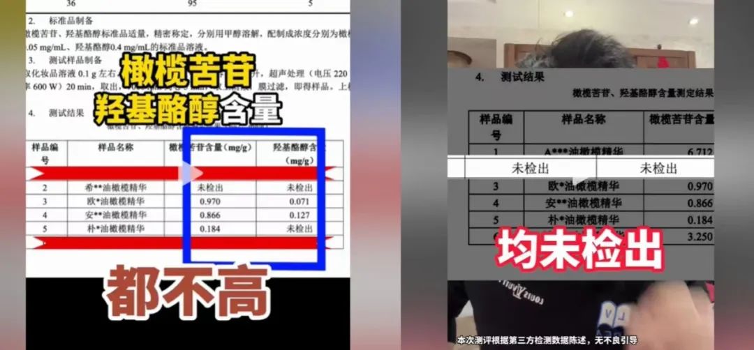 针对@大虎课代表的检测方式,有资深行业人士对青眼表示,“既然其它送检产品能够检测出橄榄苦苷等成分,那就说明视频中所使用的检测方式是可以正常检出橄榄苦苷等成分,这也从侧面证明该博主的检测方式没有问题。”