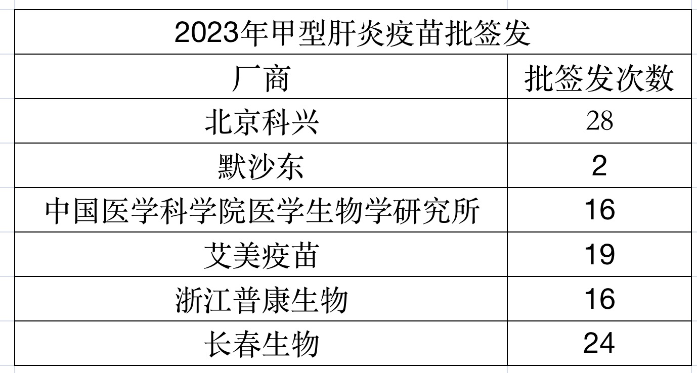 界面新闻统计中国食品药品检定研究院2023年全年的生物制品批签发产品情况发现,默沙东的甲型肝炎灭活疫苗在2023年全年仅获2个批次的批签发,且均在上半年,其中包括2月获1批次甲型肝炎灭活疫苗和6月获1批次甲型肝炎灭活疫苗。