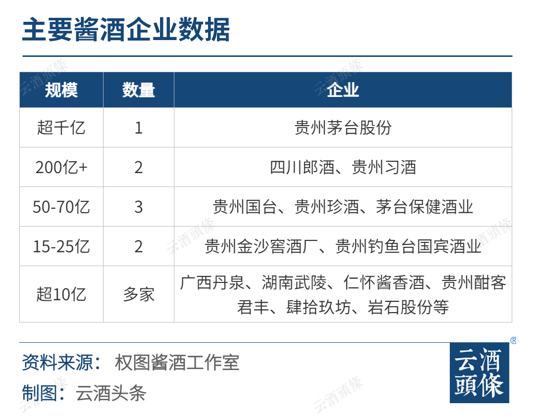 两家重点企业:贵州金沙窖酒厂、贵州钓鱼台国宾酒业营收约在15-25亿元之间。