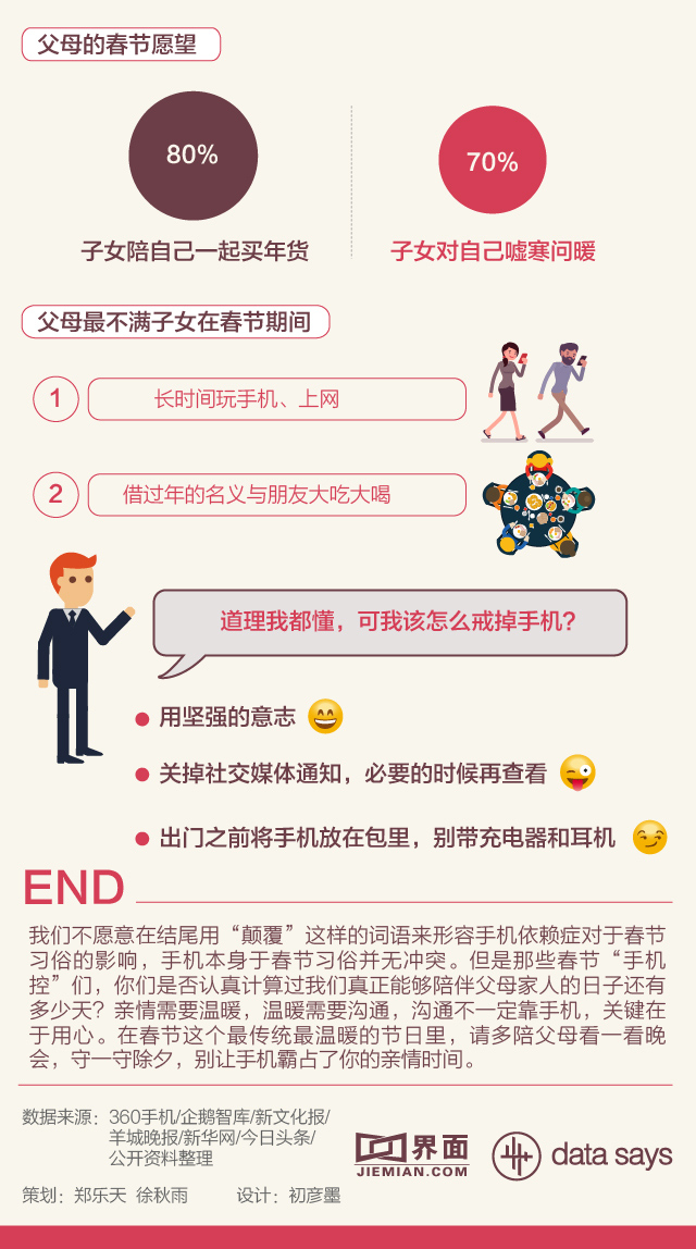 春节是一年之中最具情感共鸣的节日,不论一年多么辛苦,人们都要在过年的时候与家人团聚。近年来,“手机依赖症”却使春节少了几分陪伴与温暖。
