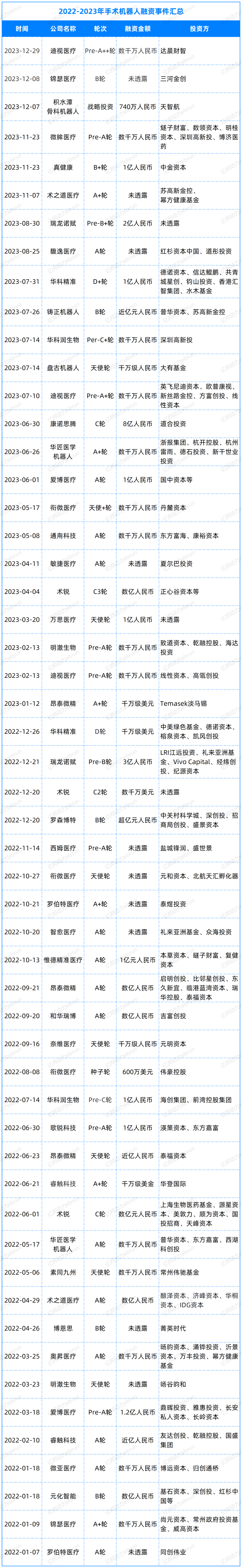 2023年,数家手术机器人公司启动IPO,走向二级市场,包括上文所述术锐机器人。
