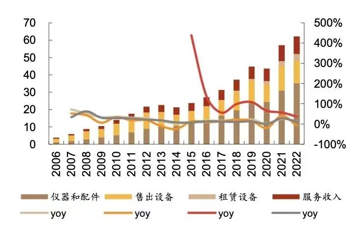 直觉外科分业务收入情况(亿美元) 图源:德邦证券