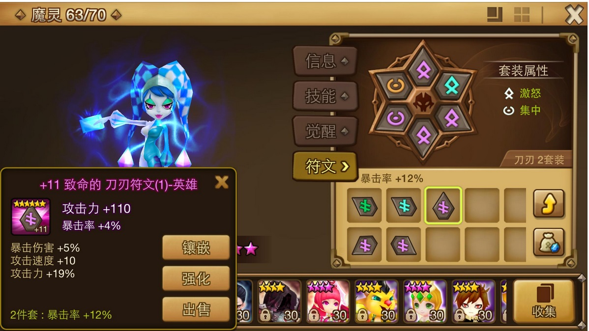 虽然可能会激怒部分没玩过《魔灵召唤》的《阴阳师》玩家,从游戏设计的客观角度来说,《魔灵召唤》和《阴阳师》的相似程度是极高的,至少有八成的设计是极其类似的,高到可以说是“框架抄袭”的地步。两者都是建筑在宠物(魔灵/式神)基础上的回合制、组队战斗游戏,每个宠物的可用技能都是三个,技能的关系排布也大体相同。两者使用的技能效果表差距不大,主要宠物的设计思路相当类似,魔灵的卡数更多,技能设计风格偏向复杂,《阴阳师》则相对更简单。外围数值成长结构也非常类似,都是建立在碎片、材料、符文/御魂基础上的成长体系,两者的属性数量、御魂数量设计也完全一致。符文/御魂系统的图,或许是最快看到两者对应关系的地方:两者甚至连数值结构、随机产生属性的方向、套装效果等都高度类似。