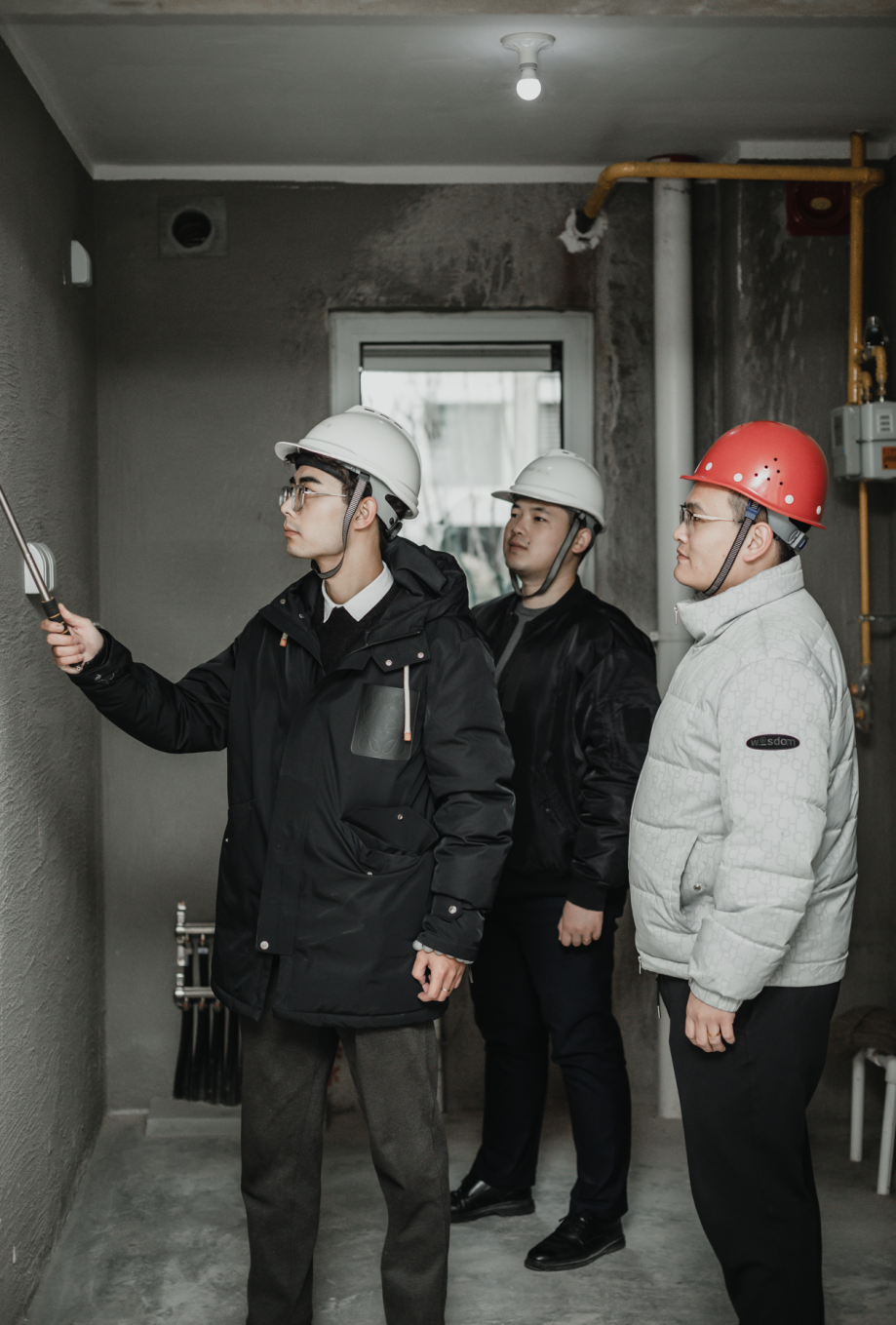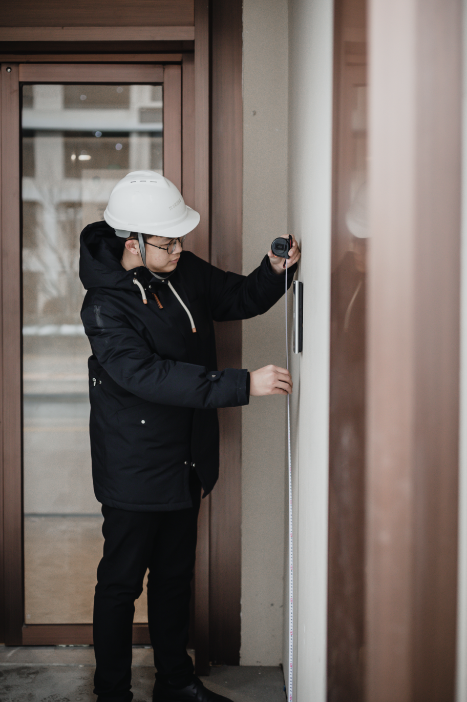根据施工进度标准,检查各部分工程施工界面是否有遗留工作,各类部品部件安装是否齐全,确保从施工层面现场已完成所有交付项;根据规划设计细节要求,着重查验各功能空间的尺寸、点位准确性等,开间进深、层高、预留洞口大小等,做到实测实量;施工工艺的标准执行情况查验,如墙地砖空鼓情况、排水坡度、铺设、墙地面平整度等,确保工程“表里如一”,为业主后续的精装施工提供更精准的工作标准。