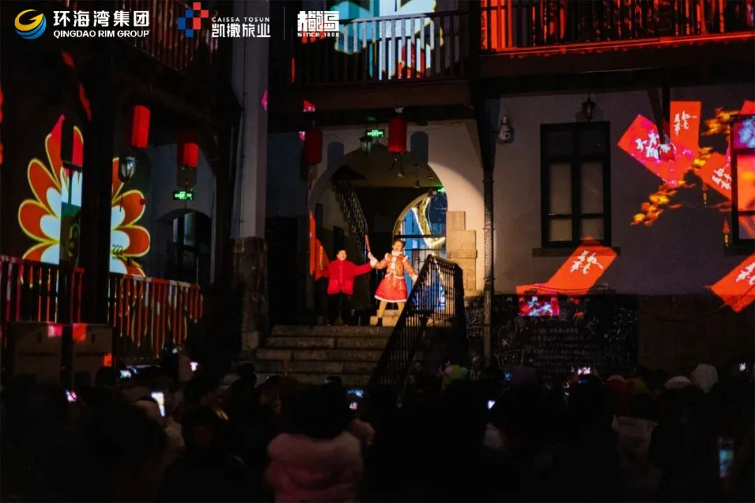 据了解,“绮光幻境”光影秀由青岛本土知名视觉创意团队仁甲看见创作,立足于大鲍岛真实历史人物事件和风土人情,巧妙融合影人、剪纸、鱼灯、变脸、冰糖葫芦等多种非遗文化元素结合最新的数字视觉艺术以及真人戏剧表演,展现一台多元素、多手法、多领域综合创意大秀。