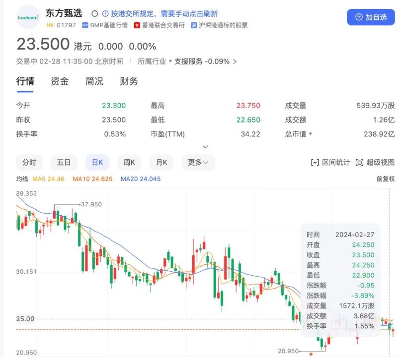 《董宇辉突然清空微博 知情人士称“个人行为” 东方甄选跌近5%》科创板日报