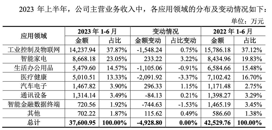 具体来看,2023年上半年,公司收入下降主要集中于医疗健康、工业控制及物联网、生活办公用品、智能金融数据终端等领域,其中,收入下降主要集中在境外地区,境外销售下降5170.87万元。
