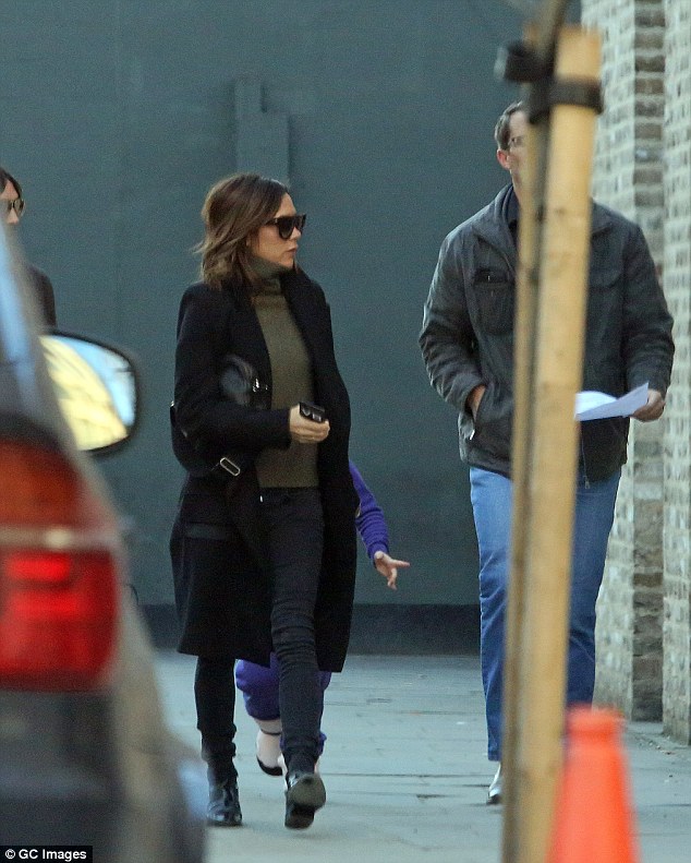 走出家门的贝嫂以一身时髦的黑色牛仔裤搭配长大衣及深色墨镜示人,标志性的高跟皮鞋、冬季高领毛衣和栗色秀发相得益彰。除此之外,贝嫂的知名发型设计师好友凯文·皮耶斯也现身街头。