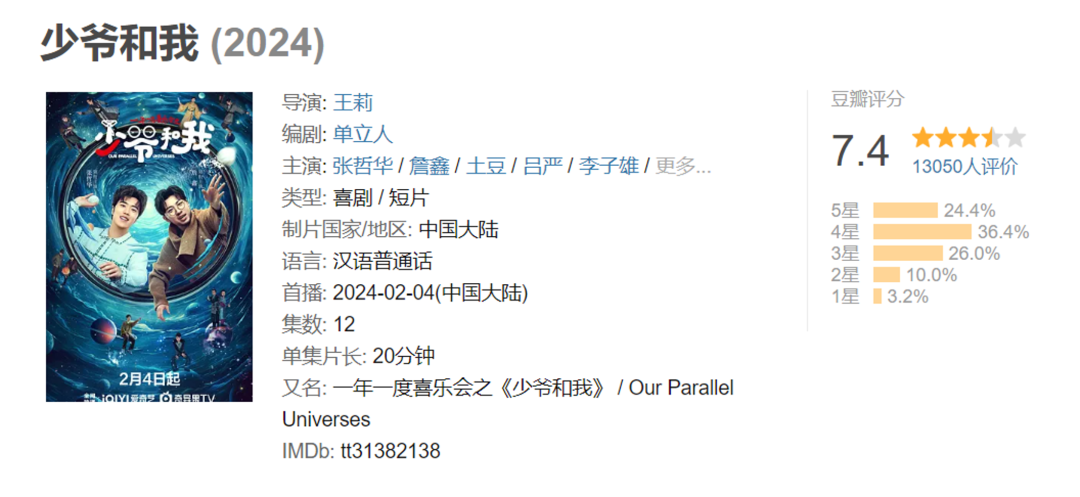 最强供给加持下,爱奇艺给甲辰龙年图了个“好彩头”:《南来北往》在央视八套的首播收视率破3,远超同期其他内容;《少爷和我》拿到7.4的豆瓣高分;《欢乐家长群》笑声中引发“世另我”的感慨……