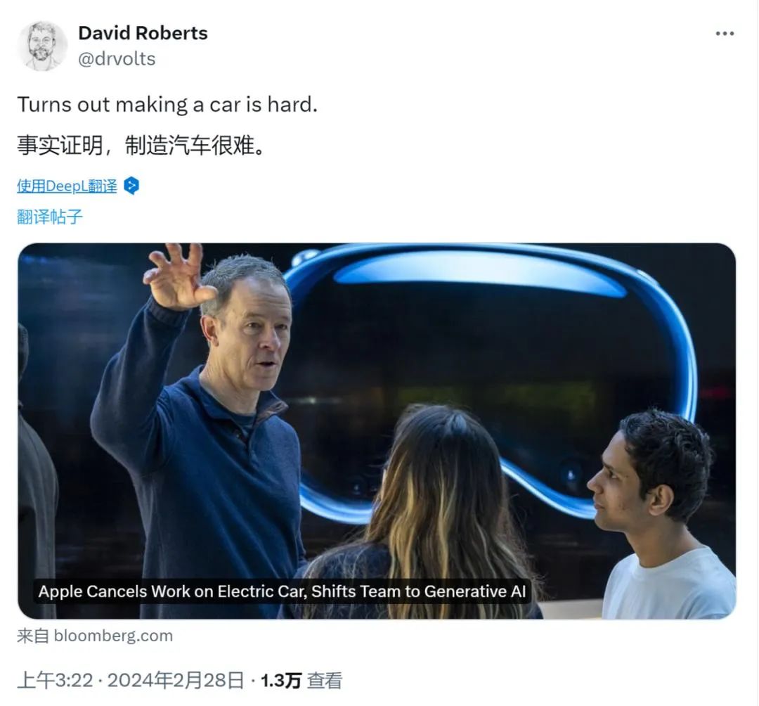 这就形成一个诡异的局面:造车大佬的气氛渲染,各路评论的全方位解构,似乎都在笃定苹果汽车真的黄了,但每个人的出发点都可以琢磨出多层意思。