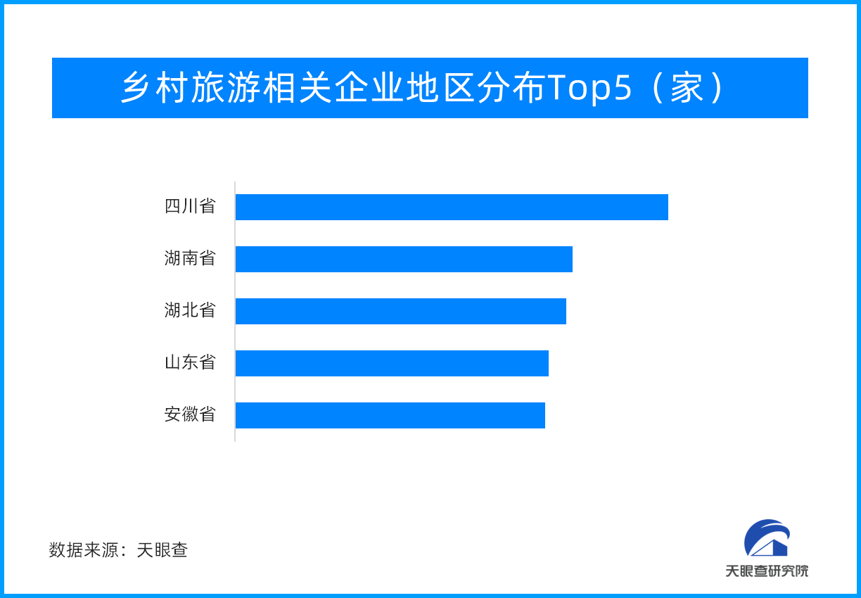 旅游原本依靠风景名胜、历史文化等核心依托,而在当下,以区域特色为核心着力点的创新文旅正在日渐打开“新市面”,乡村旅游、特色文旅成为旅游消费新的关键词。天眼查专业版数据显示,乡村旅游相关企业58.4万家,2023年新增注册企业44.7万家,从地域分布来看,四川、湖南、湖北三地,乡村旅游相关企业数量最多,分别拥有4.7万家、3.8万家以及3.6万家。