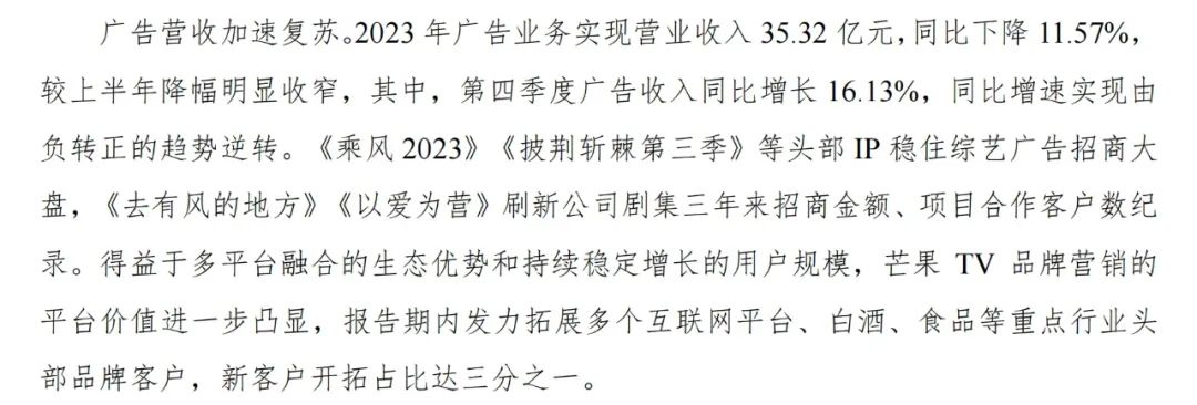 这两年,长视频平台展现出的招商增量也令行业颇为振奋,尤其是剧集招商似乎正在打开新局面。比如,爱奇艺财报提到“《宁安如梦》《一念关山》《势不可挡》等头部剧综受到广告主青睐,品牌广告中内容定向广告收入占比超过50%”;芒果TV则透露《去有风的地方》《以爱为营》刷新了公司剧集三年来招商金额、项目合作客户数记录。
