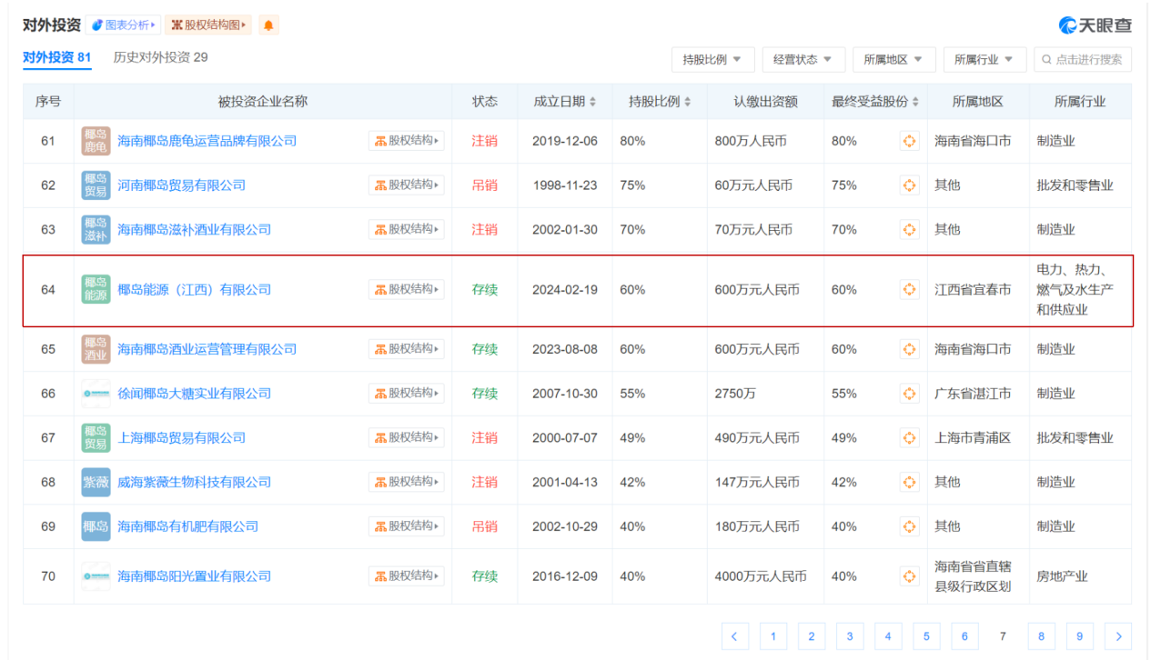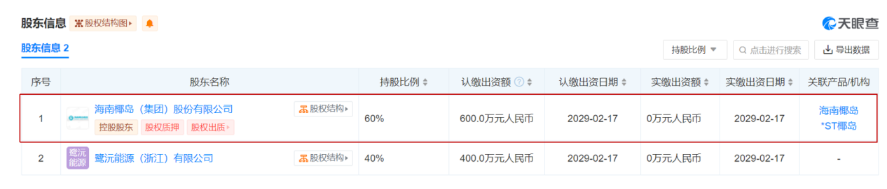 天眼查数据显示,海南椰岛与鹭沅能源(浙江)共同出资成立了椰岛能源(江西)公司。