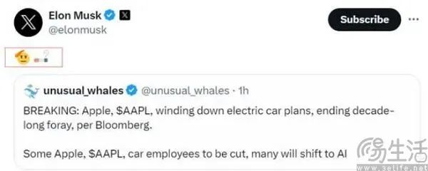 一个如此重量级的玩家退场,友商们自然也不能毫无表示。特斯拉的马斯克选择了一切尽在不言中,在X上用了一个“敬礼”的emoji表情。理想汽车CEO李想则表示,苹果放弃造车、选择聚焦人工智能是绝对正确的战略选择,时间点也合适。小鹏汽车创始人何小鹏则在接受采访时说到,“苹果汽车停止项目,也是出牌的一种”。