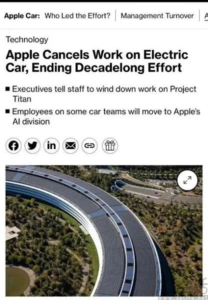 在造车项目上及时止损、把资源聚焦更具想象空间的AI,是苹果做了正确的选择,这是资本市场对于其取消电动车项目这则爆炸性消息的直接反应,该公司股价在盘中一度下跌近0.9%后,最终收盘时却上涨了0.81%。因为苹果的汽车项目、也就是“泰坦”(Titan),自2014年诞生以来就一直波折不断,以至于几乎错过了过去十年间智能汽车爆发式增长的几乎所有关键节点。