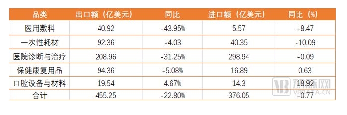 2023年我国医疗器械类产品进出口统计 数据来源:中国医药保健品进出口商会