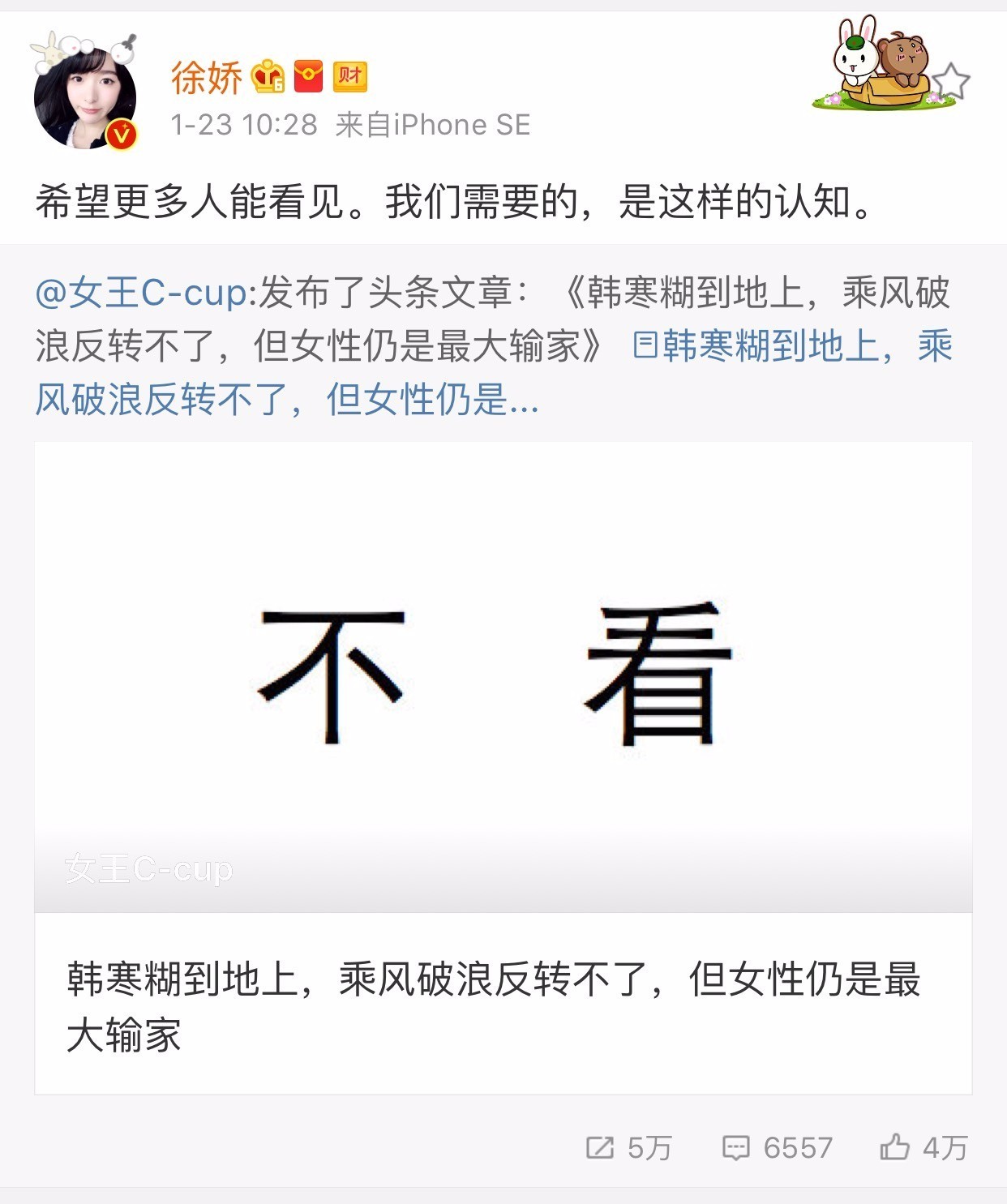 徐娇这个八杆子打不着的90后小小花怎么和韩寒一起上了热搜呢?