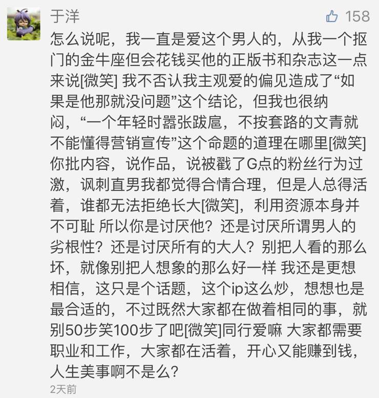 不仅给韩寒,甚至为强奸13岁少女的导演罗曼·波兰斯基洗白,而且最后竟然大言不惭说出这样的话:
