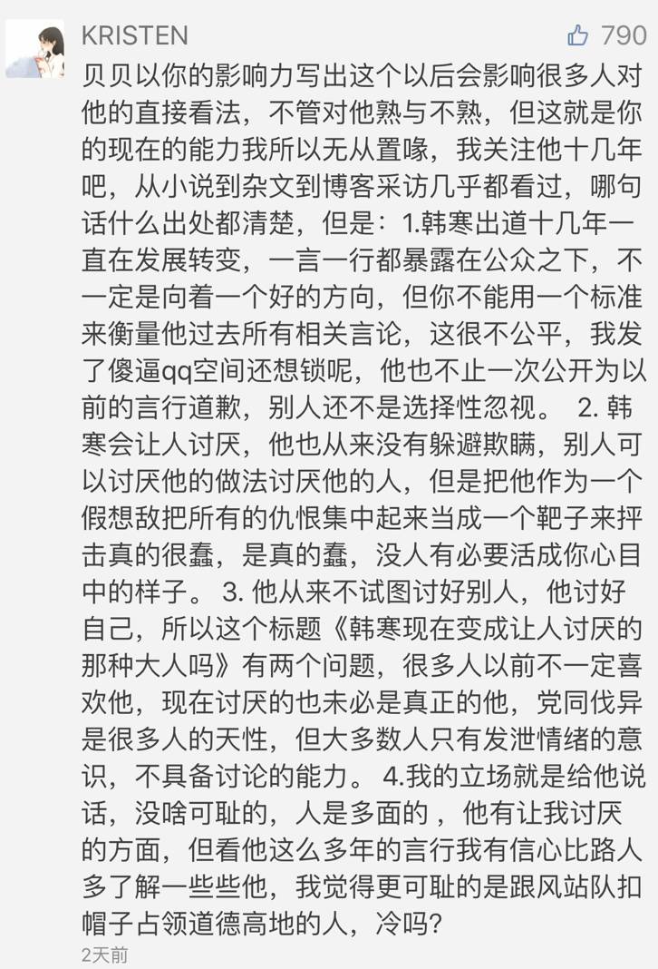 因为怼 韩 寒