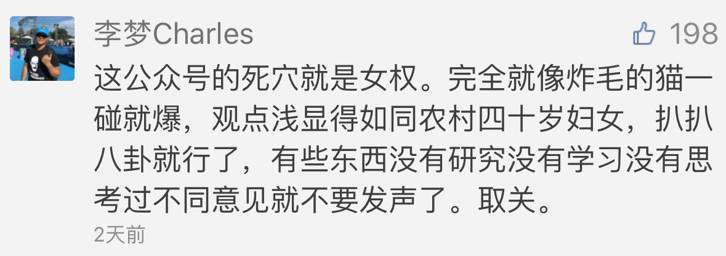 除此之外包括拥有百万粉丝的 严肃八卦、我们的好基友 女侠鵺话、还有微博上许许多多有号召力的女性博主都加入到讨论性别问题、性别意识、用性别视角看到影视作品、娱乐事件的行列中来。