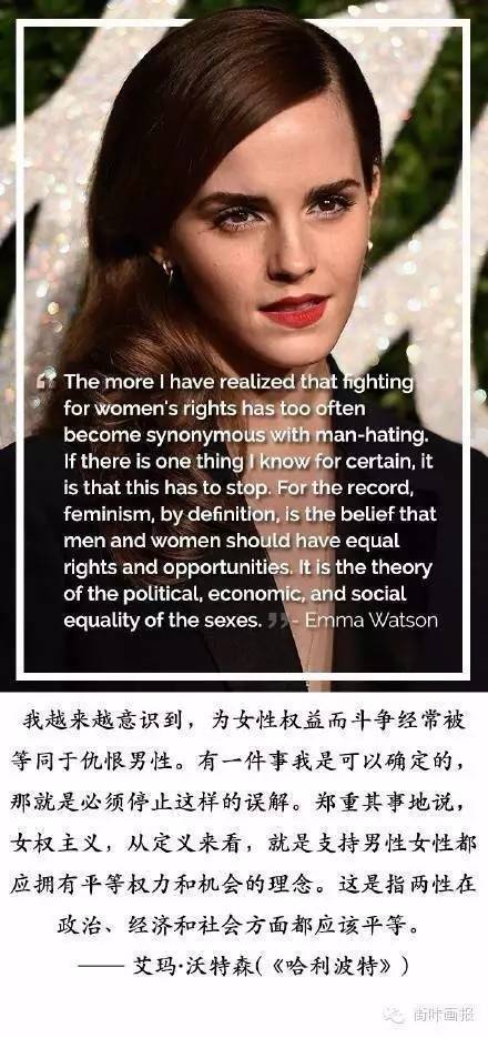 相信,有了这第一个,那么第二个、第三个,第N个为性别平等发声的明星在不久的将来一定也会接连出现。