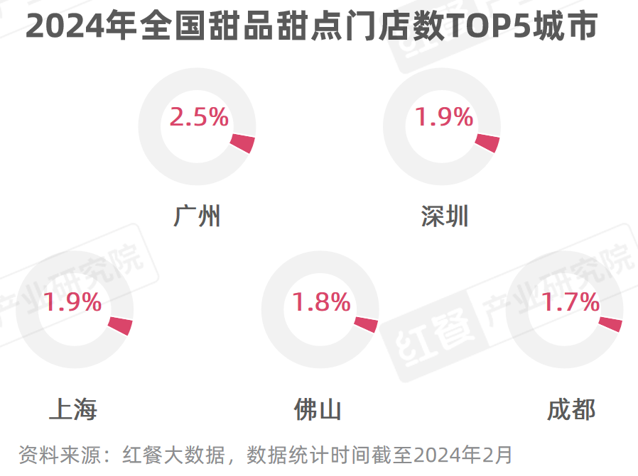 红餐大数据显示,截至2024年2月,我国甜品甜点的在营门店总数超过16万家。