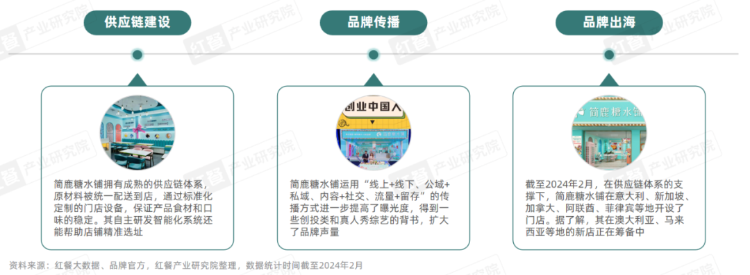 甜品甜点品牌在夯实供应链的道路上也是各有所长,满记甜品、鲜芋仙、简鹿糖水铺等品牌均取得了不错的成效。