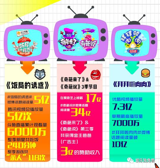而米未寄予厚望的另一档节目,是《饭局的诱惑》。“我觉得不管是从数据,从商业性,还是从大家的反馈来看,《饭局》都是我们做的新节目里比较成功的一个内容。”牟頔透露,《饭局的诱惑》第一季的商业价值并不亚于《奇葩说》。