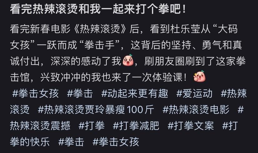 有拳馆直接推出拳击课套餐。也有部分商家给了更加“YOLO”的选择,团购套餐贴上“热辣滚烫”的tag,无论泰拳、私教还是瑜伽,凭观影票根就能换取一张课程优惠券。电影可以只看一次,但健身课必须是要持之以恒的。