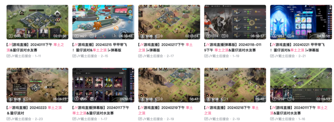 细看《率土之滨》邀请的地域服明星主播,可以发现,这些主播的属性与年轻用户十分贴合,如主播Zhan-本身就是年轻用户,且有大量大学生用户是其粉丝、JY与少帮主在《狼人杀》玩家群体中有一定的知名度,呈现在动作方面,在B站平台,已经有创作者自发的创作JY直播玩《率土之滨》的视频。