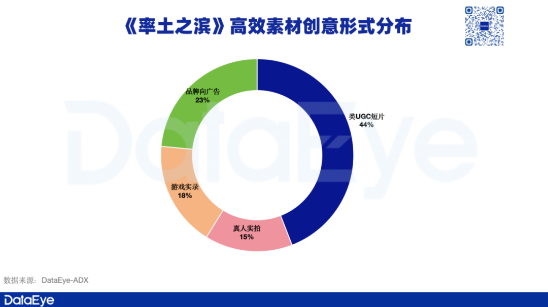 重点看表现较好的案例——《率土之滨》2024年的高效TOP50视频创意中,主要以“类UGC广告”为主,辅以“高质量品牌向广告”的素材表现形式。