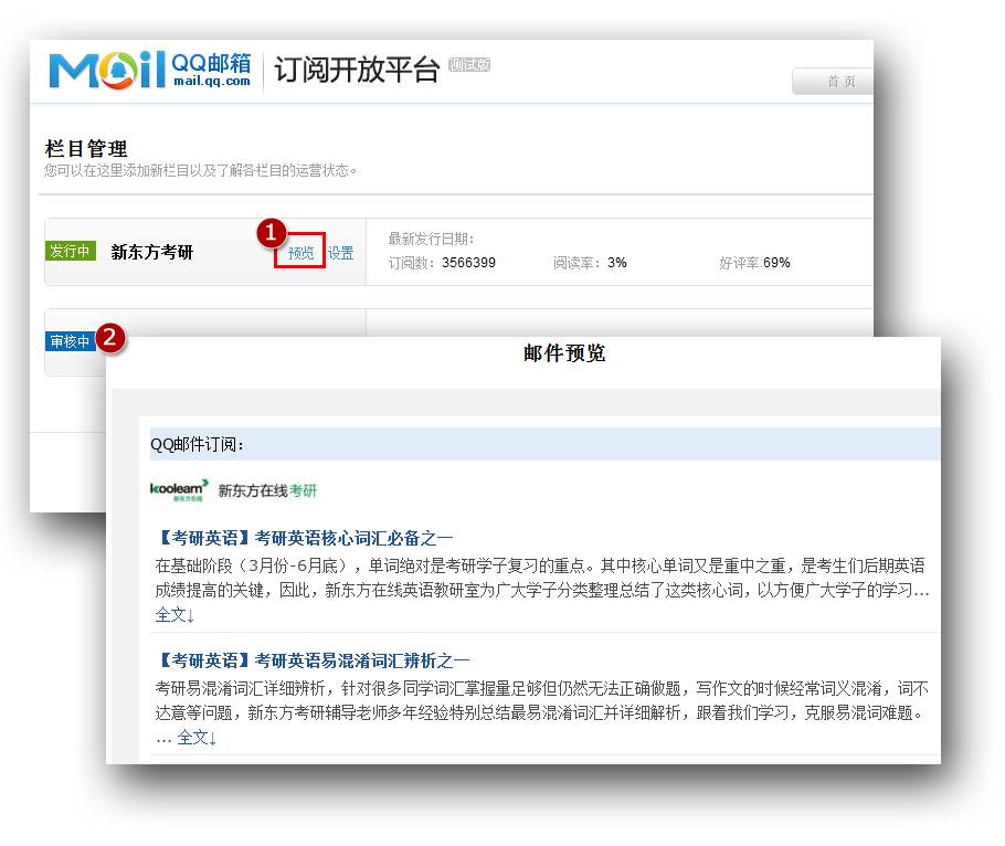 11年QQ邮箱还推出过QQ邮件订阅,产品定位是免费的杂志订阅服务。随之而来的还有QQ邮件订阅开放平台,就是腾讯通过开放平台会精选RSS源推给用户,QQ邮箱订阅开放平台的定位是免费的订阅内容接入平台。