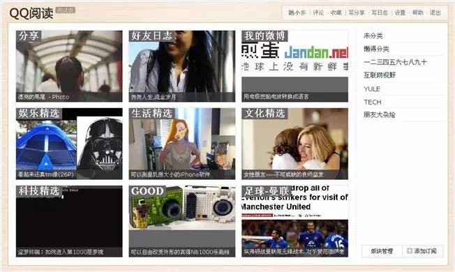 Foxmail时代我没赶上,只记得QQ邮箱10年左右上线过功能类似GoogleReader的阅读空间,即用户自主寻找网站RSS源拉取呈现给用户的,他比GR多出的亮点在于他把QQ空间的订阅也给整合进去了,而在09、10年,是少有人会想到把小孩子的QQ空间当做是一个值得订阅的RSS源的。