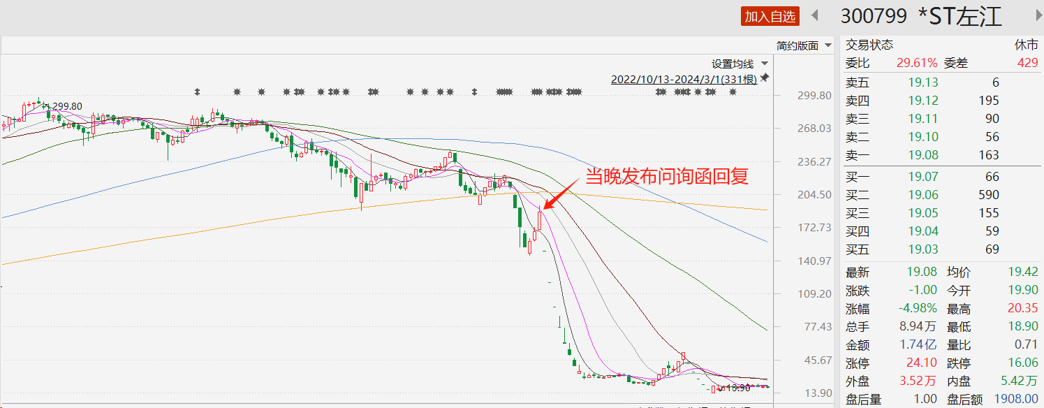 *ST左江(300799.SZ)再被监管监控。