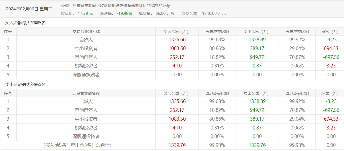 2月6日*ST左江龙虎榜显示,席位几乎与前次相同,但由于当日股价一字跌停,成交额明显下降。