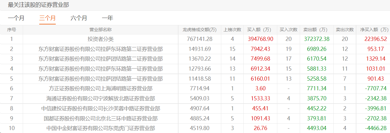 从*ST左江的龙虎榜情况来看,各路游资积极参与炒作,且知名游资“拉萨天团”深度参与。今年以来*ST左江累计12次登上龙虎榜。整体来看,Choice数据显示,过去三个月“投资者分类”位列榜一,累计买入39.48亿元并卖出37.24亿元,净买入2.24亿元;榜二至榜五则被东方财富拉萨的四个营业部占据。