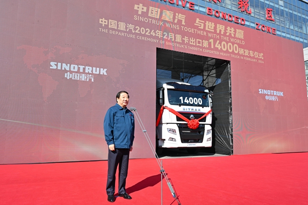 3月1日上午,“中国重汽 与世界共赢”——中国重汽2024年2月出口第14000辆重卡发车仪式在济南综合保税区举行。山东重工集团党委书记、董事长、总经理,中国重汽集团董事长,潍柴集团董事长谭旭光,济南海关关长刘卫出席活动并讲话,山东重工集团党委副书记、副总经理,中国重汽集团党委书记、总经理王志坚主持活动。