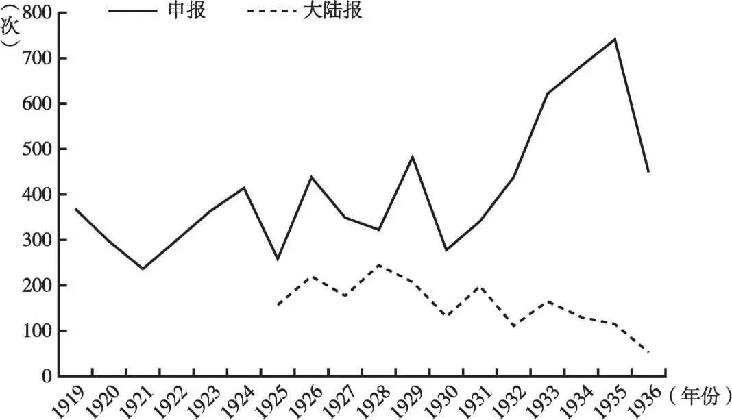 1919-1936年上海百货公司在《申报》和《大陆报》的广告总数