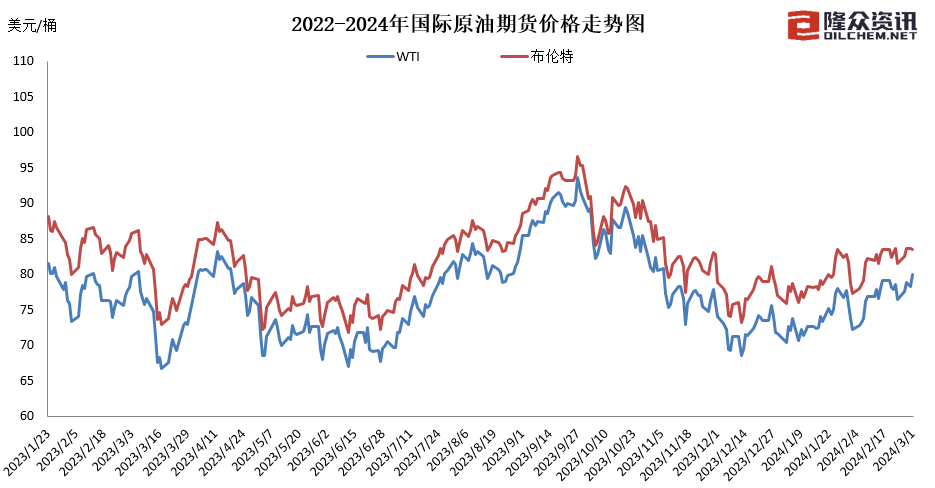 截至北京时间3月4日凌晨,WTI即月原油期货收涨2.19%,报79.97美元/桶;布伦特即月原油期货收涨2%,报83.55美元/桶。