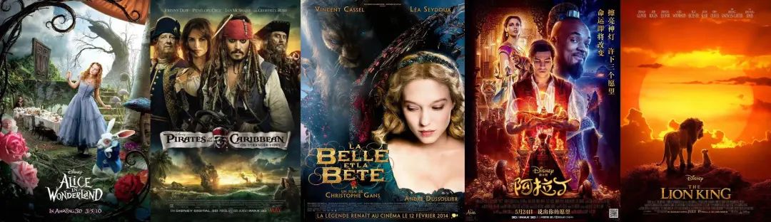 (《爱丽丝梦游仙境》《加勒比海盗:惊涛怪浪》《美女与野兽》《阿拉丁》《狮子王》(图源:豆瓣)